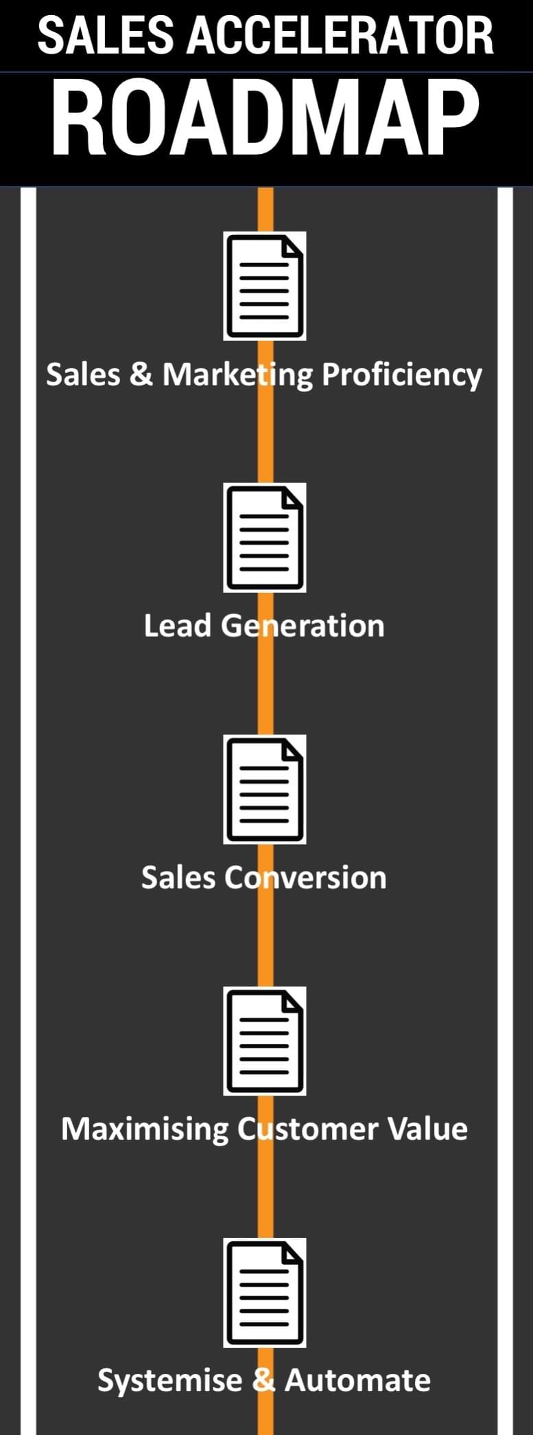 •  LOW-COST TO IMPLEMENT: Better still, the solutions are low-cost – often even zero cost - to implement. With the Sales Accelerator ROADMAP you can grow your business without breaking the bank and still achieve outstanding results even on a shoestring budget if necessary.